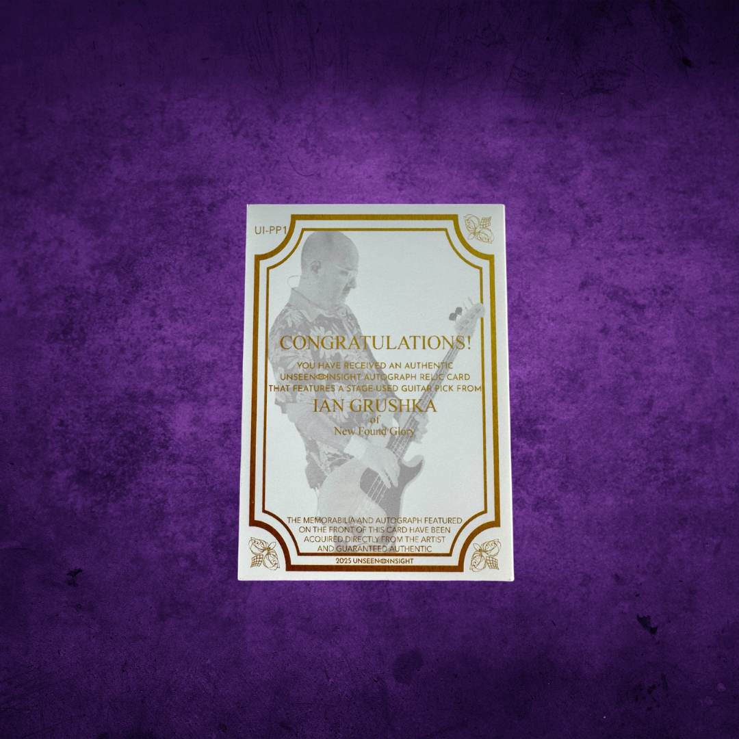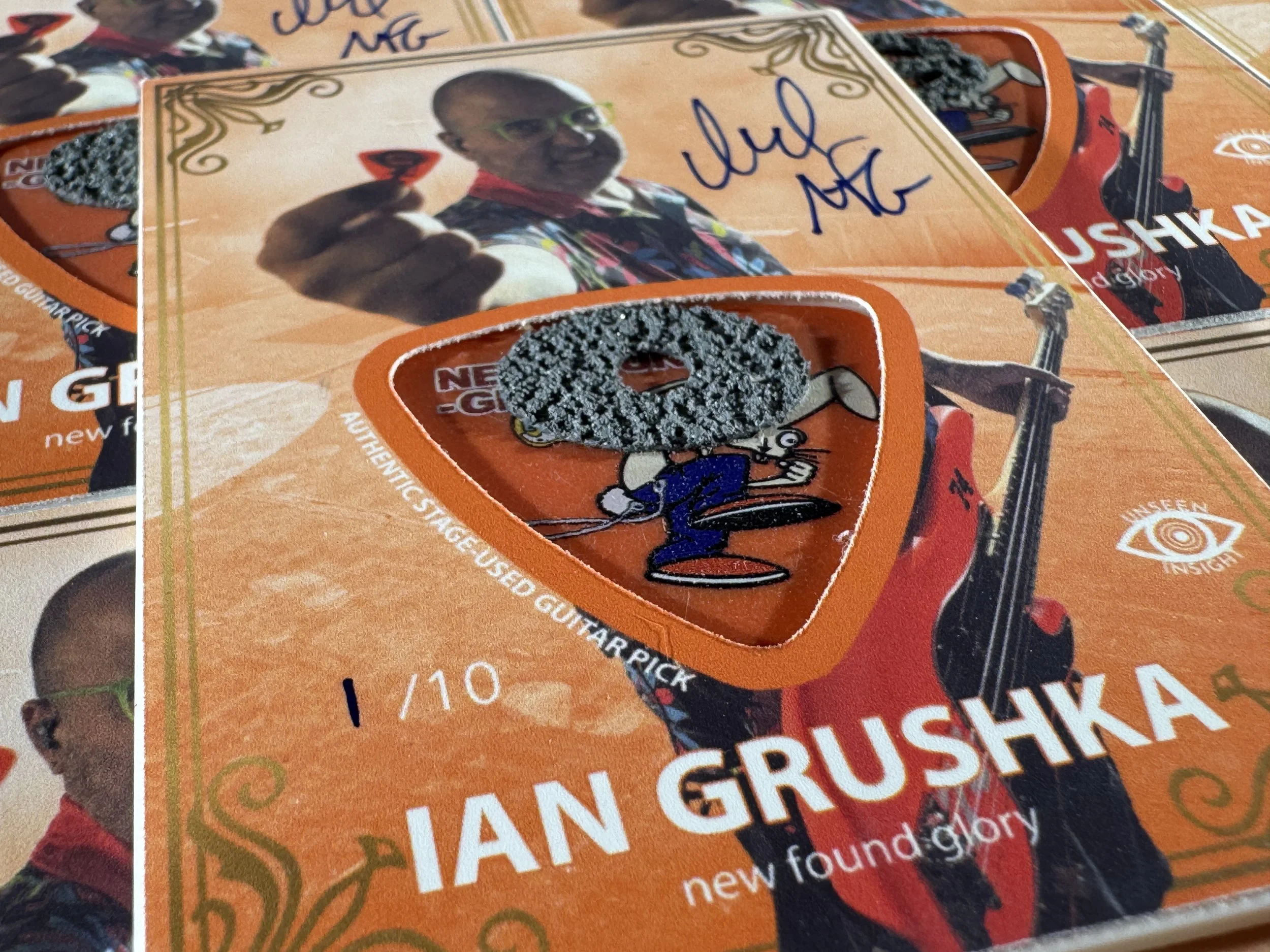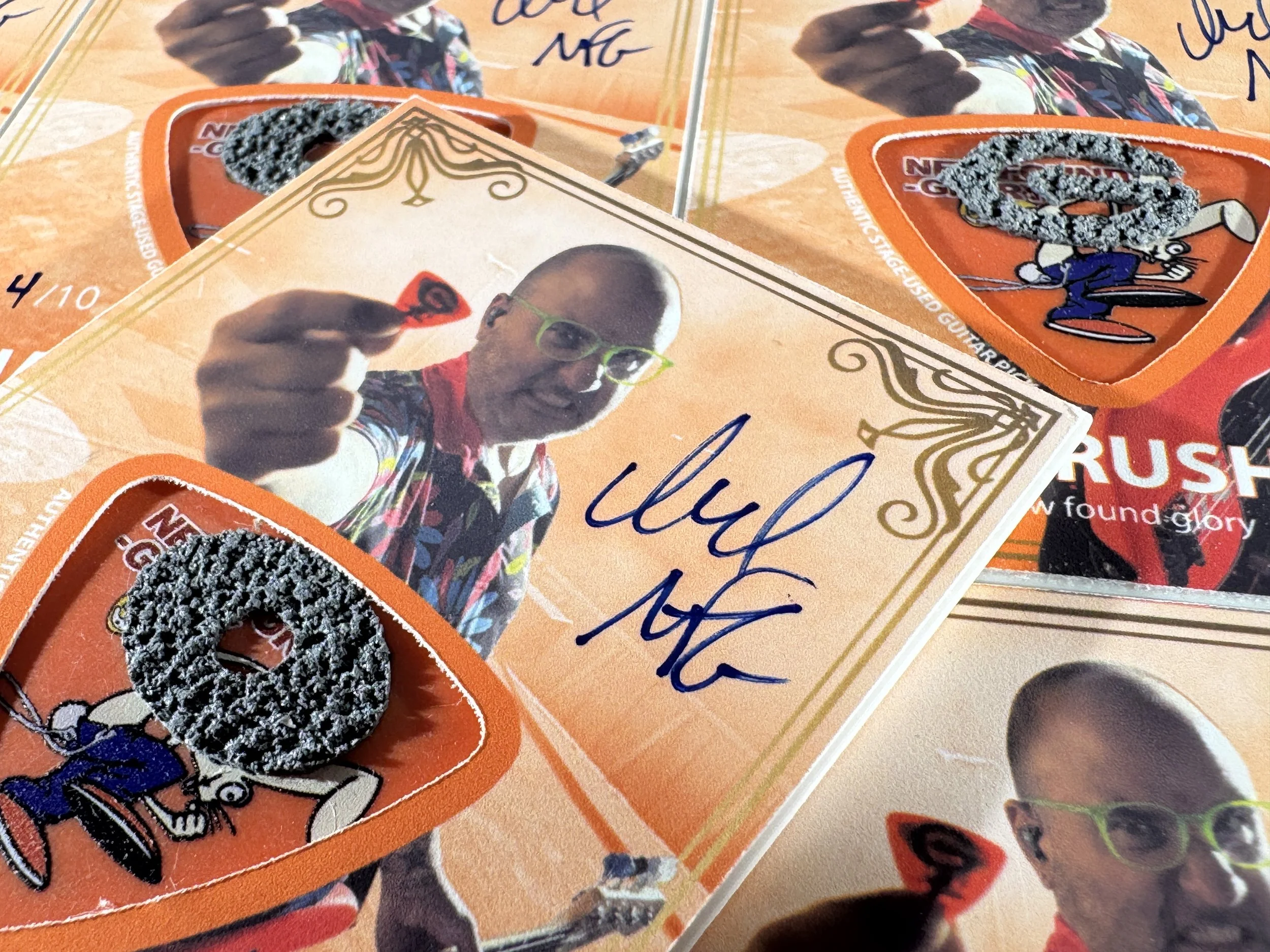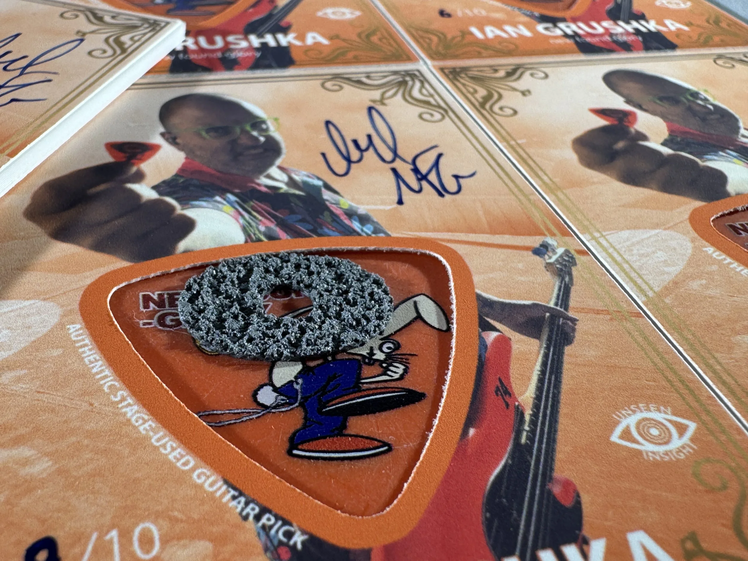 Product Drops Stolen Kingdom - 8-Card Collection (Limited to 1) $250.00 Stolen Kingdom - Cast Member Park Badges Set $100.00 Stolen Kingdom - River Country Raft Relic Card $30.00 Picking Up The Pieces - Buzzy Animatronic Relic Card $30.00 Picking Up The Pieces - Buzzy Costume Relic Card $30.00 Stolen Kingdom - Horizons Stardust Transparency Card $35.00 Do Not Destroy - Buzzy Parts Transparency Card $35.00 Do Not Destroy - Horizons Robot Butler Transparency Card $35.00 Do Not Destroy - Maelstrom Viking Transparency Card $35.00 Do Not Destroy - The Great American Movie Ride Ripley Transparency Card $35.00 Ian Grushka - 12 Card Collection - LIMITED TO 3 $650.00 2-CARD SET Ian Grushka - Personal Cuts Autographed RSVLTS Shirt/Shorts Relic Cards $120.00 Ian Grushka - Signature Sound Autographed Bass Strings Relic Card $100.00 3-CARD SET Ian Grushka - Punk’n Go-Nuts Autograph Cards $150.00 Ian Grushka - Icon Series Autographed Bass Pick Relic Card $75.00 2-Card SET - Poopies - Picking Up The Pieces Autographed Deck AND Grip Relic Cards Sale Price: $100.00 Original Price: $175.00 Sale Poopies - Picking Up The Pieces Autographed Skateboard GRIP Relic Card Sale Price: $70.00 Original Price: $100.00 Sale Poopies - Picking Up The Pieces Autographed Skateboard DECK Relic Card Sale Price: $70.00 Original Price: $100.00 Sale Dimebag Darrell - Icon Series Guitar Pick Relic Card $75.00 Sold out Ian Grushka - Green Slime Autographed Bass Pick Relic Card $100.00 Sold out Cyrus Bolooki - Icon Sticks Autographed Drum Stick Relic Card $100.00 Sold out Ian Grushka - Blue Wave Bass Pick Autographed Relic Card $50.00 Sold out